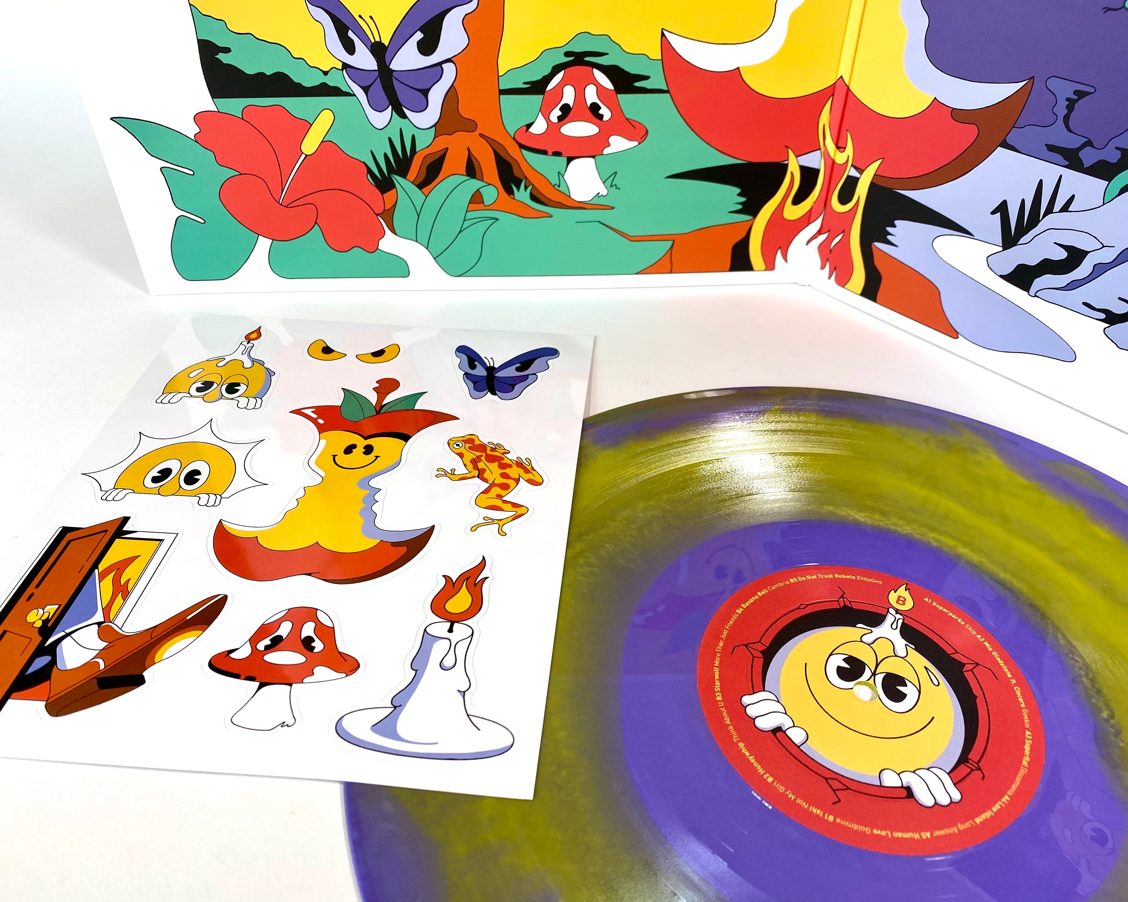 This is the vinyl edition of the album Astro Lobo by Starwolf, pressed on coke-bottle vinyl with blue swirl. True to its retro-tinged cover, the album is filled with funky disco and astral pop jams marinated in lush synths and undeniable grooves. If you've ever boogied to Chromeo or Jamiroquai, there's plenty to love here.